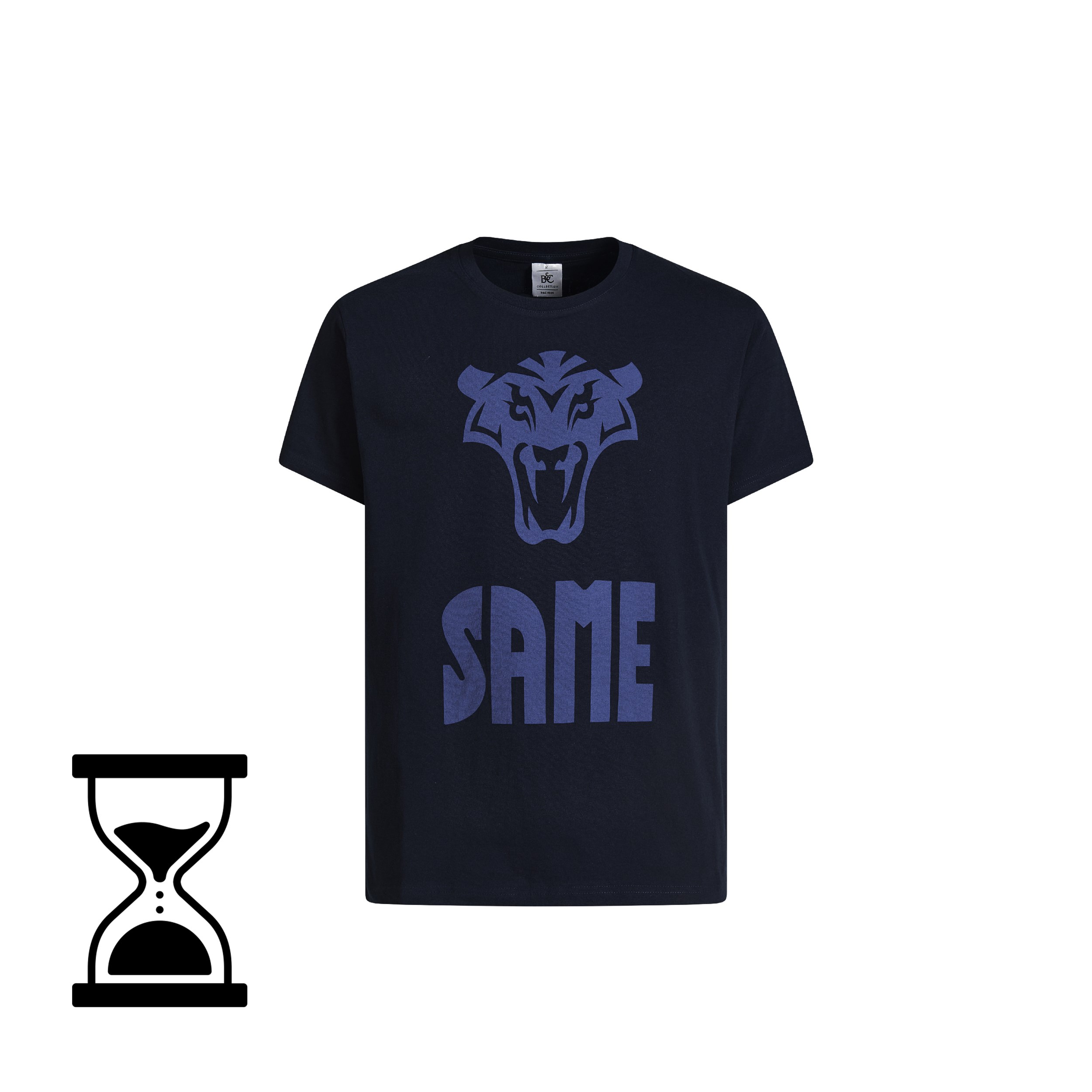 La camiseta para hombre azul marino SAME de cuello redondo está confeccionada en algodón 100 % hilado en anillos de 185 g/m2 para garantizar calidad y durabilidad. Las mangas son cortas, el escote es de canalé 1x1 con elastano y la estructura del busto es tubular, sin costuras laterales, para un mejor ajuste. El estampado del logotipo SAME tono sobre tono en la parte delantera confiere a la prenda un estilo original y distintivo.