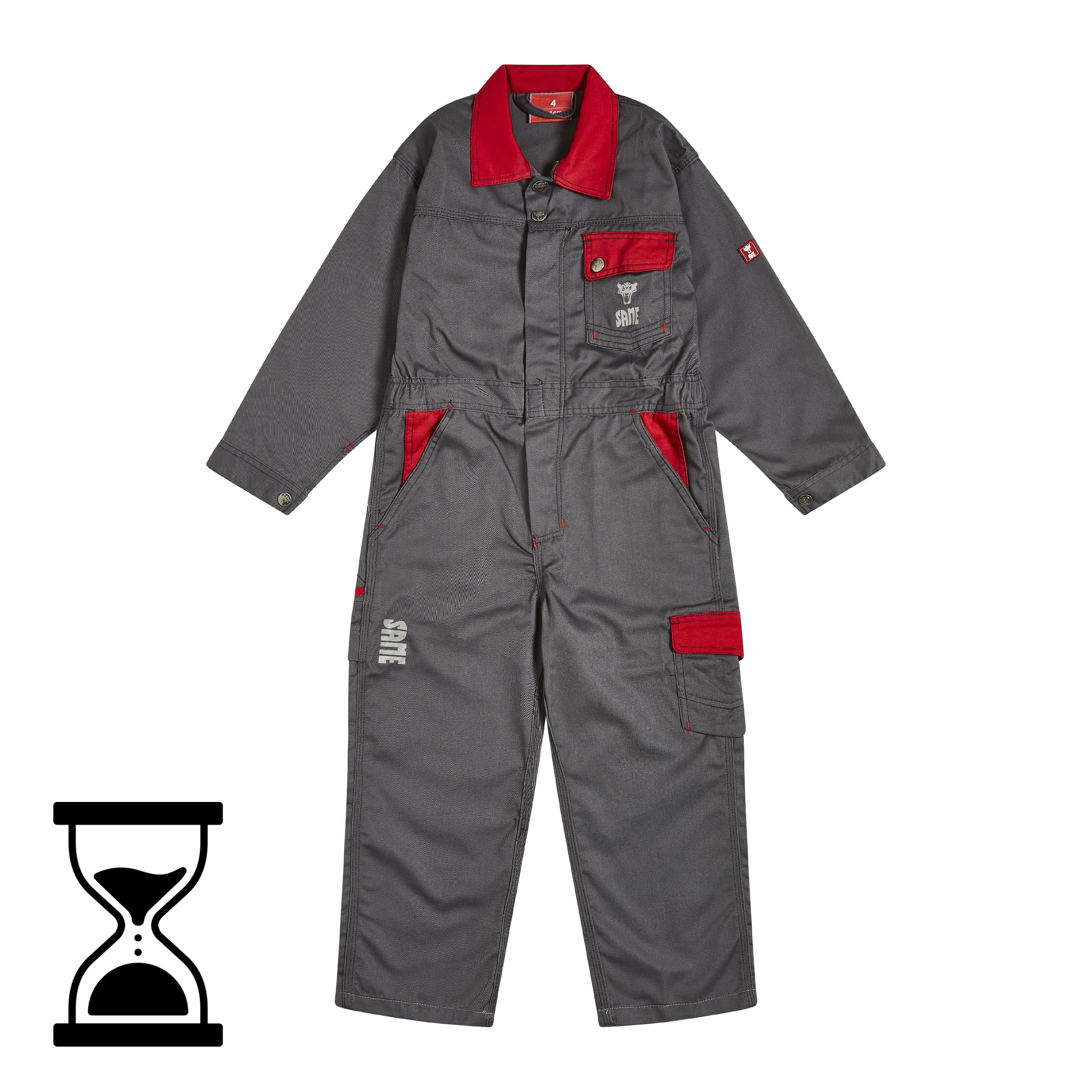 Mono de trabajo con cuello camisero confeccionado en tejido de sarga de algodón resistente y duradero, 240 g/m². Estampado logotipo SAME en material reflectante en la parte delantera y trasera del mono, rodillas moldeadas y ergonómicas, dobladillo extensible, numerosos bolsillos con diferentes funciones y varios detalles rojos en contraste.